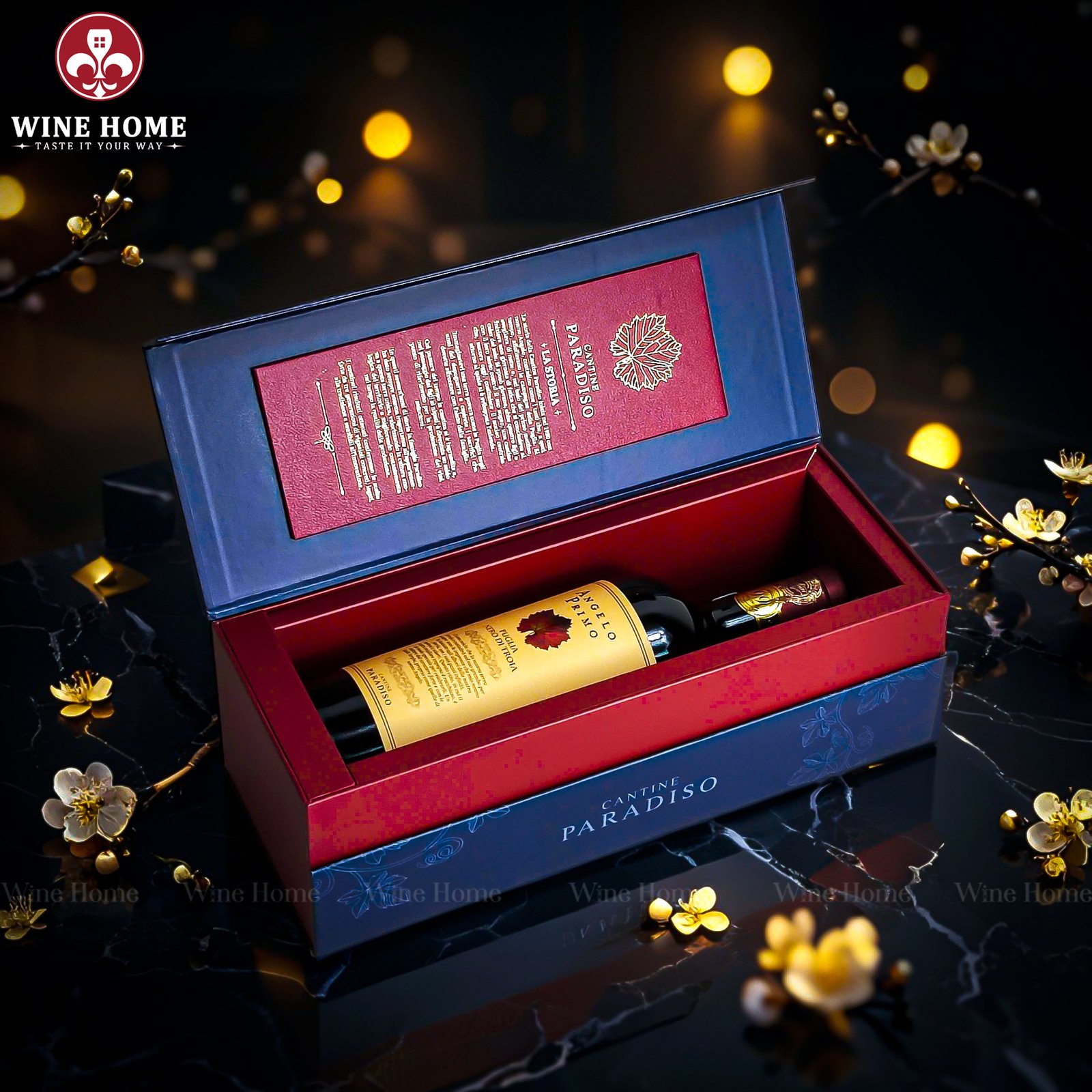 Hộp quà rượu vang 1 chai Cantine Paradiso là lựa chọn hoàn hảo cho những ai đang tìm kiếm một món quà sang trọng, tinh tế và mang giá trị lâu dài. Dưới sự phân phối của WineHome, sản phẩm không chỉ đảm bảo chất lượng mà còn được nâng tầm về hình thức và ý nghĩa.
