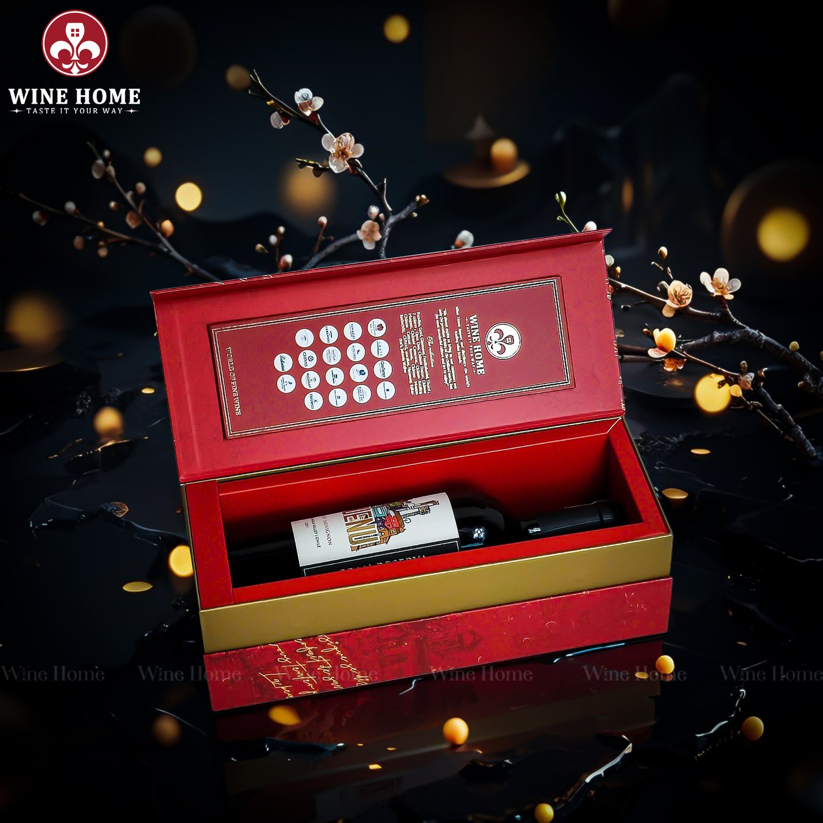 Hộp Quà Rượu Vang 1 Chai Hộp Đỏ Cao Cấp 05 – Giải Pháp Quà Tặng WineHome