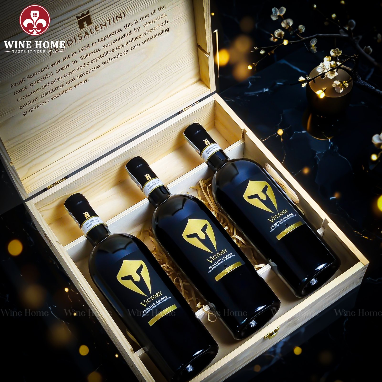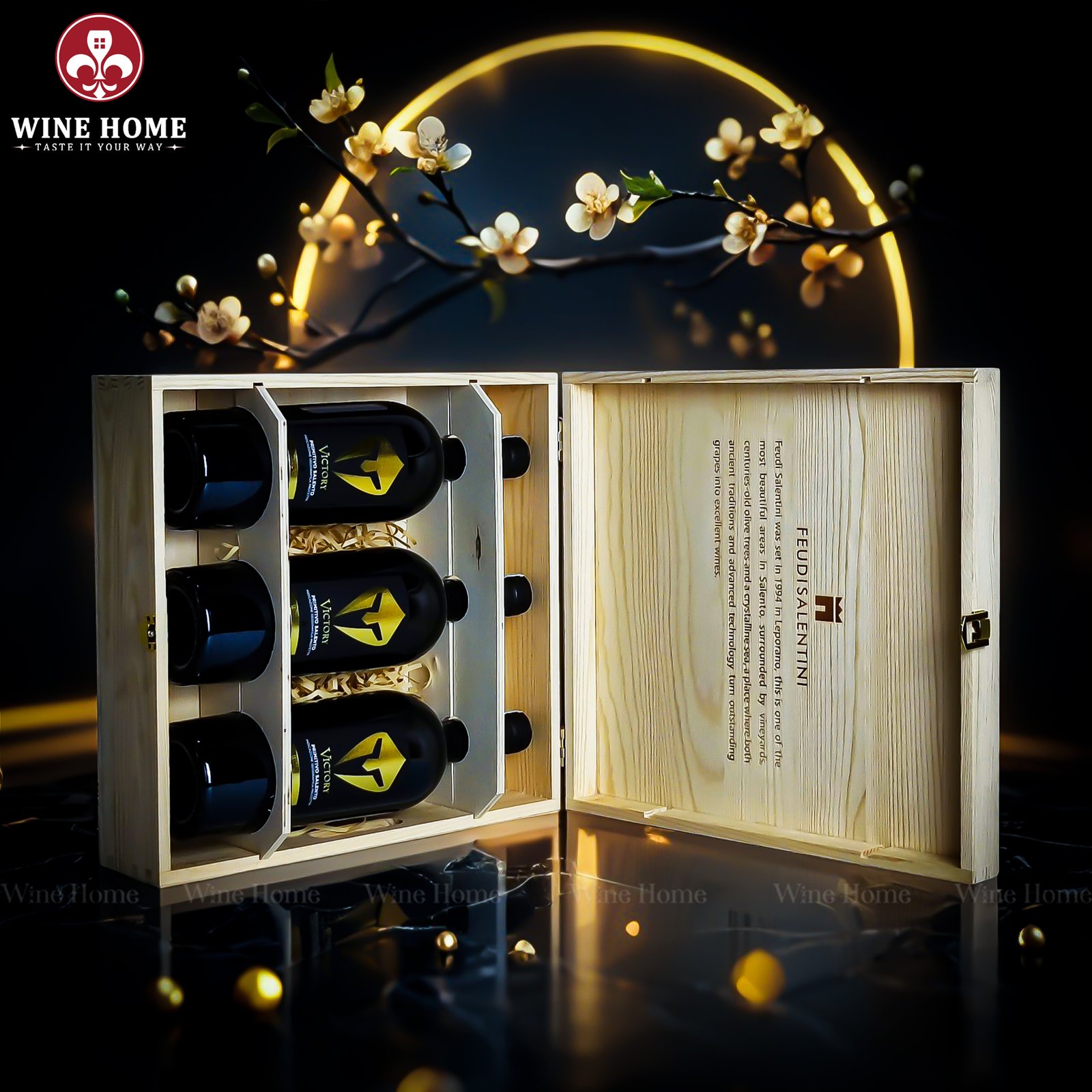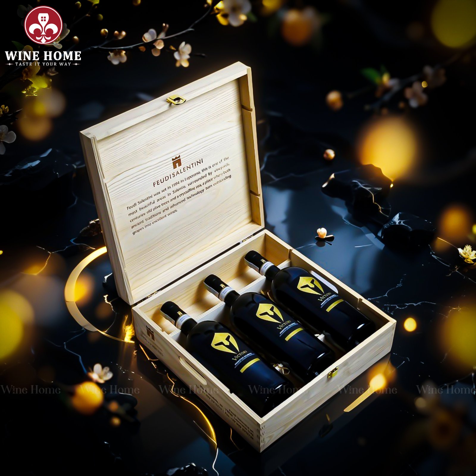 Hộp quà rượu vang 3 chai Feudi Salentini 01 | Quà biếu sang trọng từ Nam Ý – WineHome