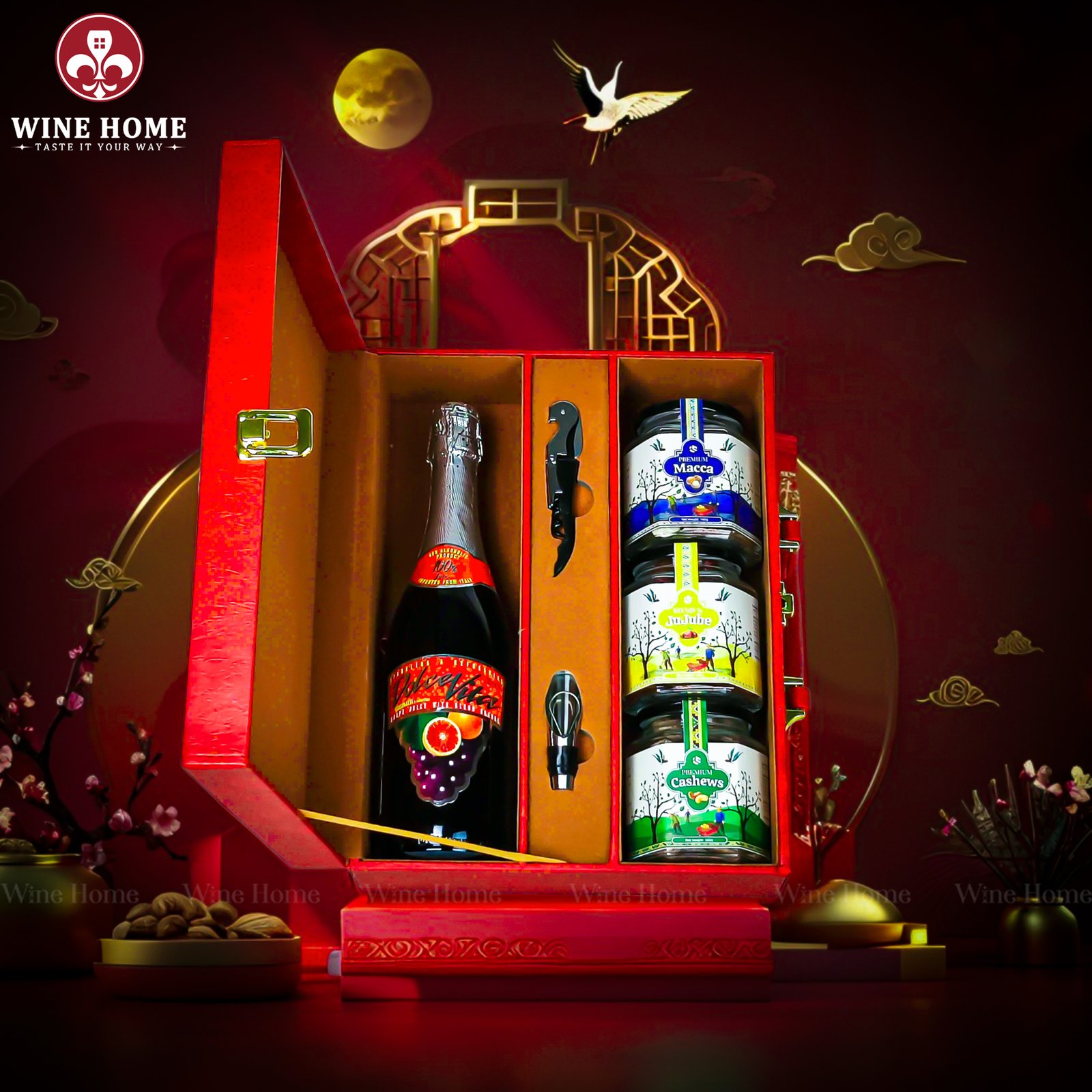 Hộp Quà Tết Rượu Hạt Hộp Da Đỏ Quai Ngang 02 | Quà Tặng Cao Cấp – Sang Trọng – May Mắn | Wine Home