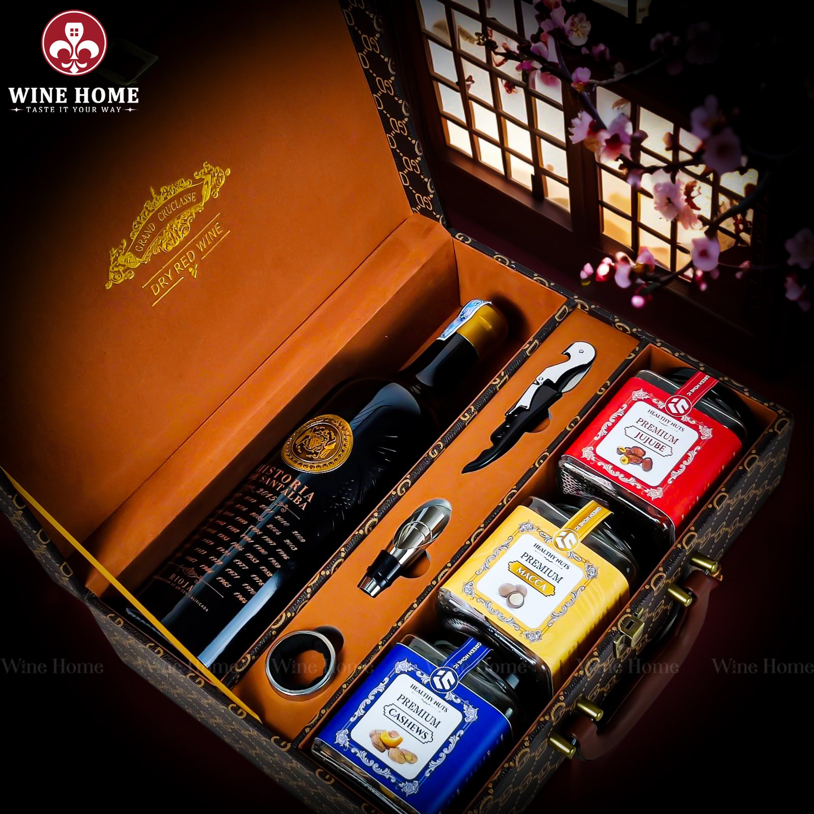 Hộp Quà Tết Rượu Hạt Hộp Da Nâu Vali 05 – Quà Tết Doanh Nghiệp Sang Trọng & Đẳng Cấp 2026
