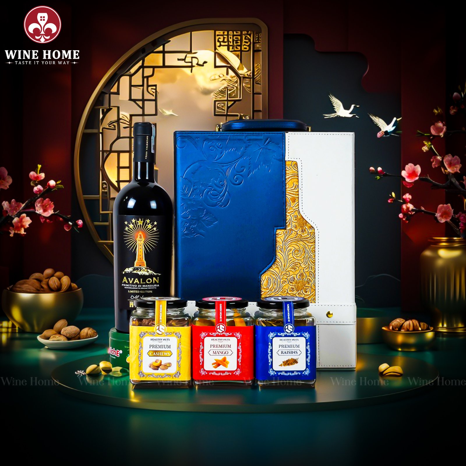 Hộp Quà Tết Rượu Hạt Hộp Da Xanh Quai Xách Dọc 03 – Quà Tặng Doanh Nghiệp Sang Trọng